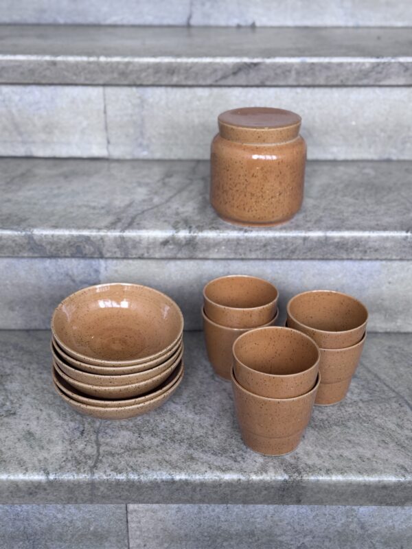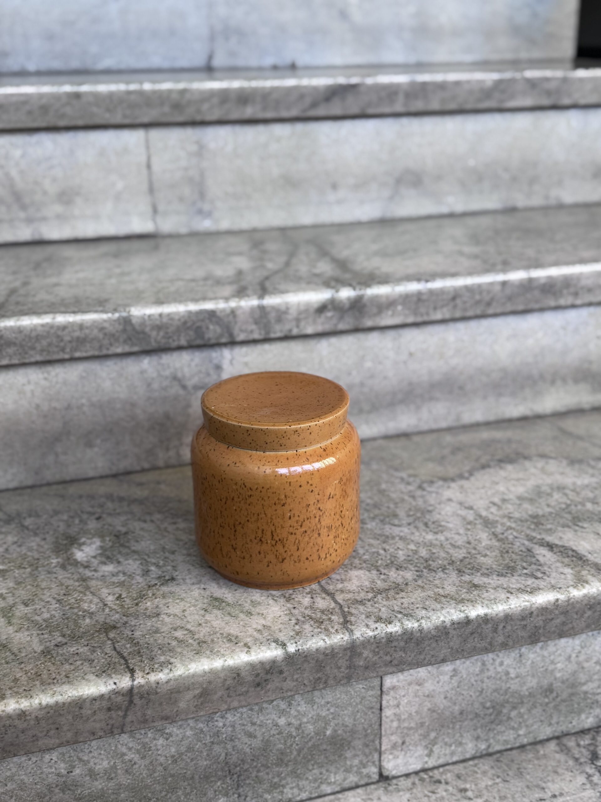 Burk med dunderhonung-känsla, blir inte gulligare än så. Perfekt som kaffeburk. Storlek: 100cl Utförande: Lavalera med blank gul glasyr